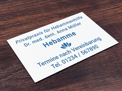 Als Hebamme repräsentieren Sie eine der ältesten und wichtigsten medizinischen Professionen. Ein hochwertiges Praxisschild unterstreicht die Bedeutung Ihrer Arbeit und schafft von Beginn an das Vertrauen, das für eine erfolgreiche Betreuung werdender Eltern unerlässlich ist. Die richtige Kombination aus hygienischen Materialien, professioneller Gestaltung und fachgerechter Montage gewährleistet jahrelange Freude an Ihrem Praxisschild. Investieren Sie in ein Schild, das Ihre Kompetenz und Sorgfalt widerspiegelt – Ihre Klientinnen werden es zu schätzen wissen.